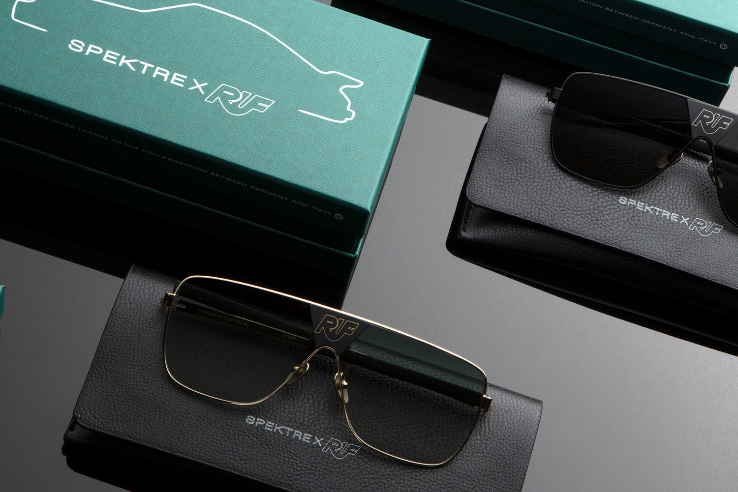 Spektre Eyewear freut sich, Ihnen in Zusammenarbeit mit Ruf Automobile seine neueste Kollektion limitierter Sonnenbrillen vorstellen zu dürfen. Um die Besonderheit dieser beiden Unternehmen hervorzuheben, die in zwei unterschiedlichen Branchen tätig sind, und dank einer Synergievereinbarung, wollten wir die Stärken betonen, die diese beiden Unternehmen verbinden.