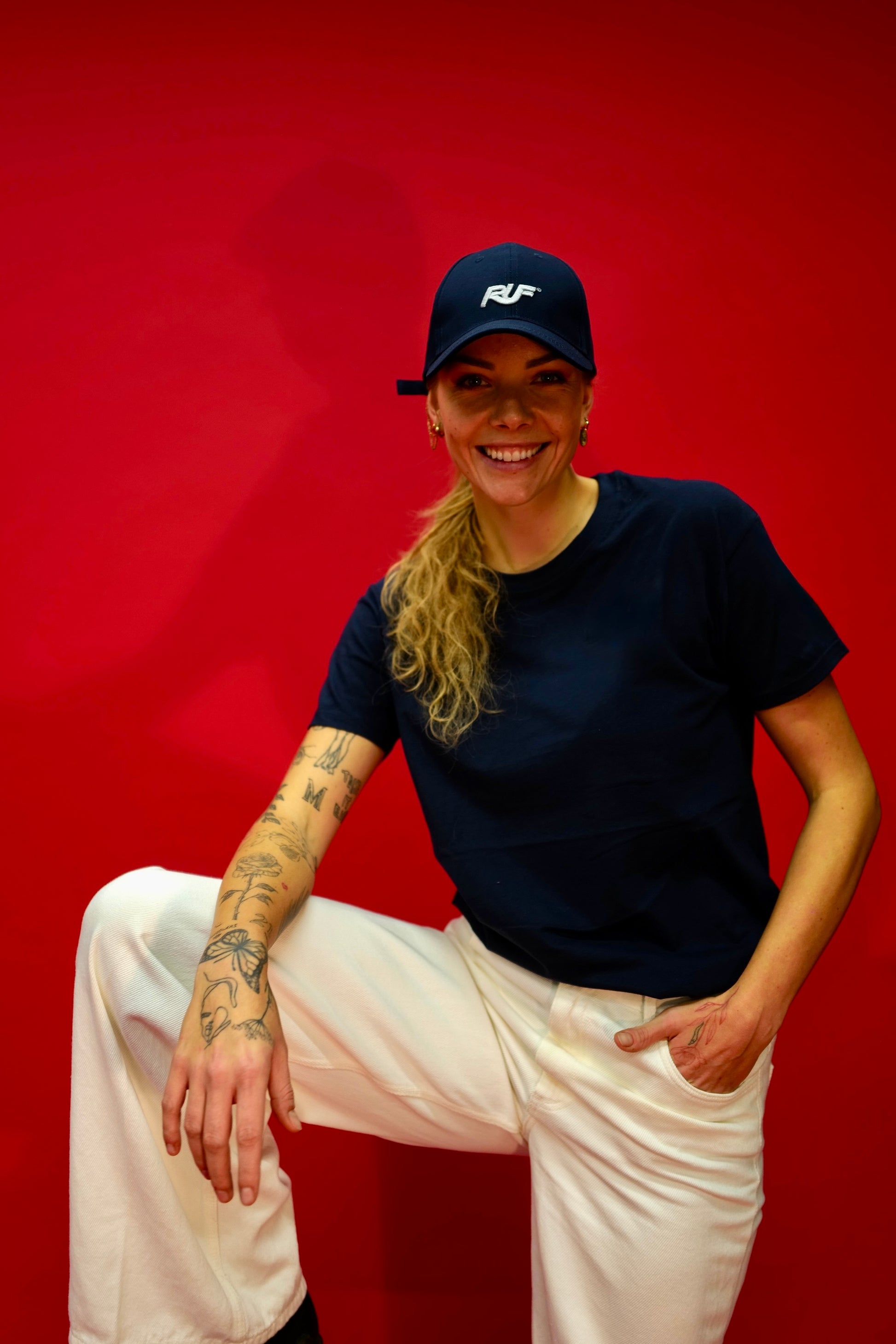 Hochwertig verarbeitete RUF Cap in der Farbe navy in drei verschiedenen Logo-Farben auf der Vorderseite. Durch die Hochwertige Verarbeitung ist sie ein stylisches Accessoire für den Alltag.